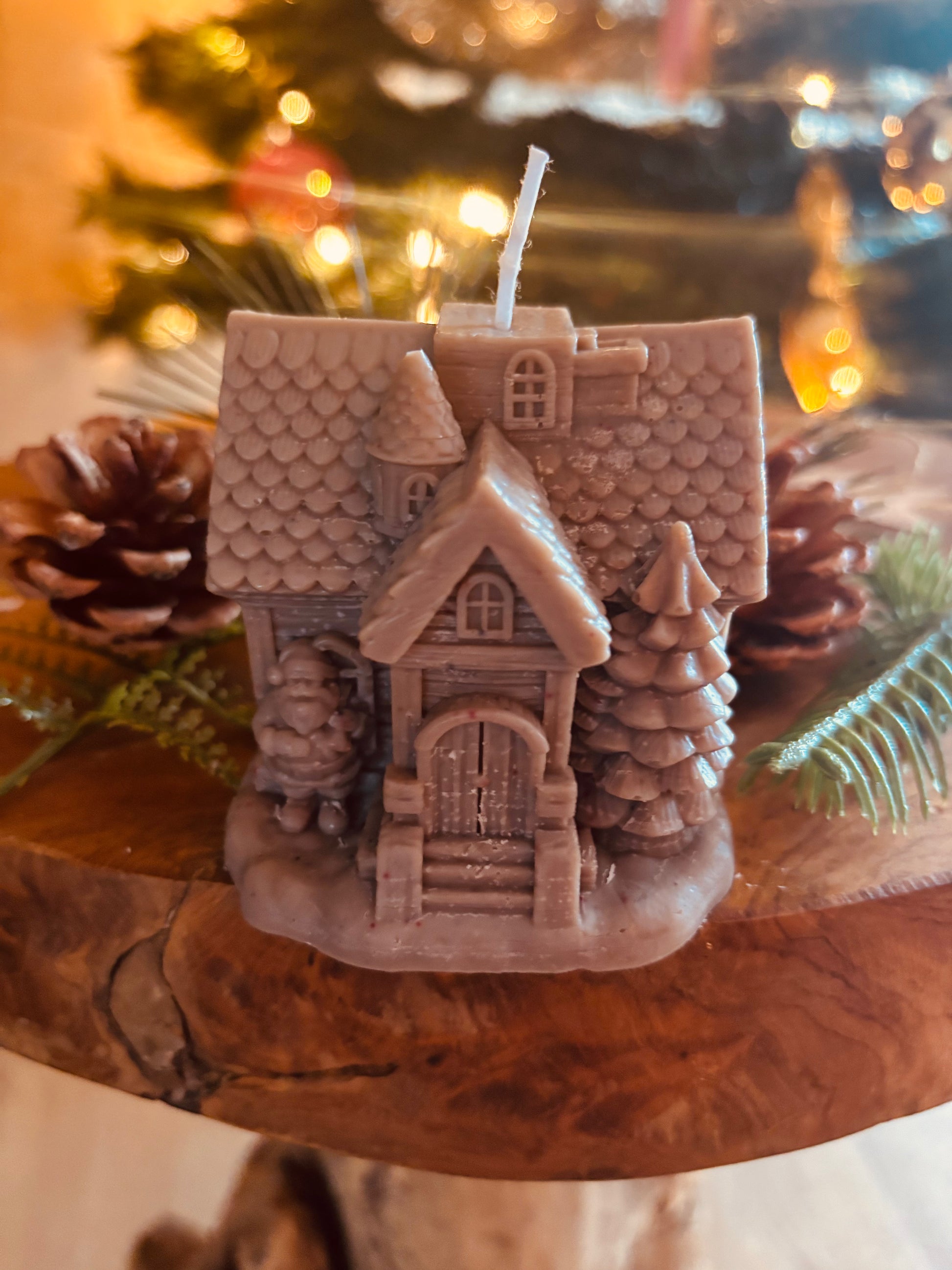 Luxe Handgemaakte Kerst Kaarsenset - Boom & Huisje in Cadeaubox