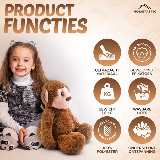 Gemaakt van superzacht pluche, met een afmeting van ± 45 cm, geschikt voor zowel kinderen als volwassenen. De knuffel is wasbaar en heeft een aantrekkelijk design dat ook als decoratie in de slaapkamer of woonkamer past.