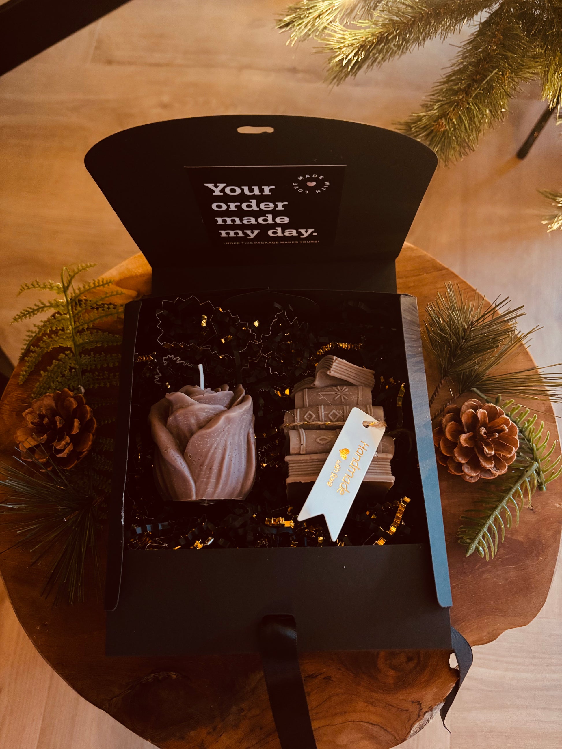 Breng direct warme wintersfeer in huis ❄️✨ met deze luxe cadeaubox met handgemaakte designkaarsen 🕯️.